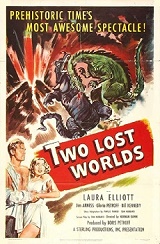 Two Lost Worlds is an English movie which is set in the year 1830 about a shipmate named Kirk Hamilton whose soul mate Elaine is kidnapped by a group of pirates. Kirk finds the pirates and hunts them down on an estranged volcanic island where dinosaurs still exist. Kirk must hurry to himself and Elaine from this monstrous place. This one hour movie is not an original live- action dinosaur movie. This film's dinosaurs sequences were mostly taken from the One Million BC.